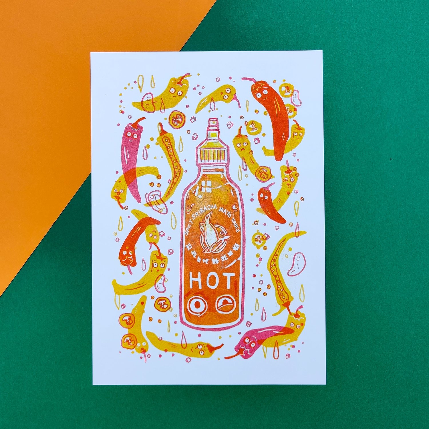 HOT Sauce Sriracha Mayo A4 Risograph Print.